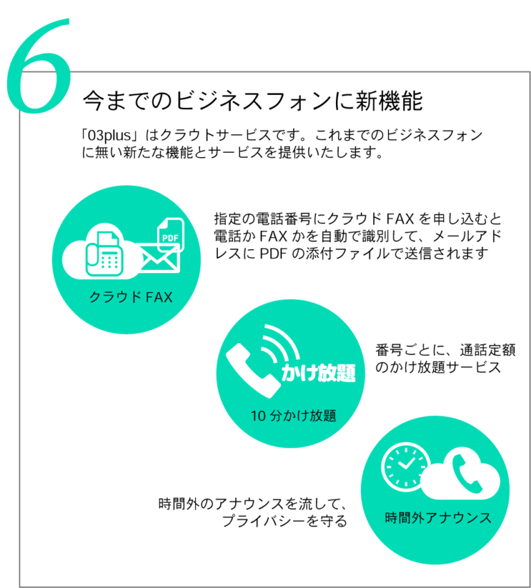 03plusのサービスは、ビジネスフォンシステムの利用料と電話回線を合わせた料金です。